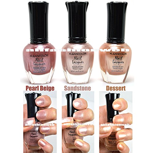 -. Title : 3 KLEANCOLOR NAIL POLISH PEARL BEIGE, SANDSTONE, DESSERT NUDE LACQUER + FREE EARRING