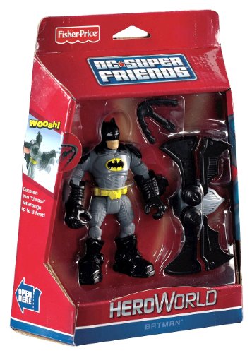 -. Binding : Toy -. Brand : Fisher-Price -. EAN : 0027084921397 -. Feature : Batman outwits all the enemies of Gotham City / Press a button on the pack, batwings pop out / Place a batarang in Batman's hand, turn the actionator to watch him throw / Reinact all your favorite Super Friends moments with this cool action figure / Collect all the Hero World DC Super Friends: Batman, The Joker, Penguin, Mr. Freeze, and Superman -. IsAdultProduct : 0 -. Label : Fisher Price -. Manufacturer : Fisher Price -. Model : T6108 -. MPN : T6108 -. PackageQuantity : 1 -. PartNumber : T6108 -. ProductGroup : Toy -. ProductTypeName : TOYS_AND_GAMES -. Publisher : Fisher Price -. SKU : 7225 -. Studio : Fisher Price -. Title : Fisher-Price Hero World DC Super Friends Batman -. UPC : 027084921397 -. Warranty : No Warranty