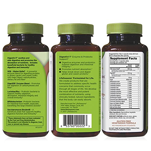 PROBIOTIC SUPPLEMENT: Help break down food and promote beneficial bacteria in your digestive track with LifeSeasons Digestivi-T Enzyme & Probiotic Support. Help banish bloat, help digest gluten and dairy easier, and generally feel better, typically within a month.