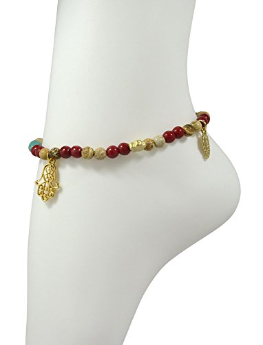 -. Binding : Jewelry -. Brand : MIZZE Made for Luck Jewelry -. Department : womens -. Feature : A beautiful handmade Jasper and red corals charm anklet / All charms are gold plated / Anklet measures 9.5 inches / Stretch anklet, one size fits most ankles. -. Label : MIZZE Made for Luck Jewelry -. Manufacturer : MIZZE Made for Luck Jewelry -. Model : MZ6010JCG -. MPN : MZ6010JCG -. PartNumber : MZ6010JCG -. ProductGroup : Jewelry -. ProductTypeName : FASHIONNECKLACEBRACELETANKLET -. Publisher : MIZZE Made for Luck Jewelry -. Studio : MIZZE Made for Luck Jewelry -. Title : Jasper & Red Coral Gemstones Stretch Handmade Anklet with Charms for Good Health & Good Luck