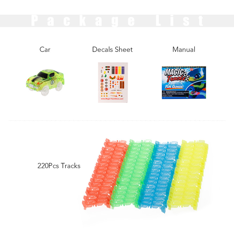 This is one of the most popular children's toys nowadays! Track race car. But this toy is just more than that! The track is luminated, it's glowing in the dark! Come on and get one for your kids to explore wonderful racer's world!