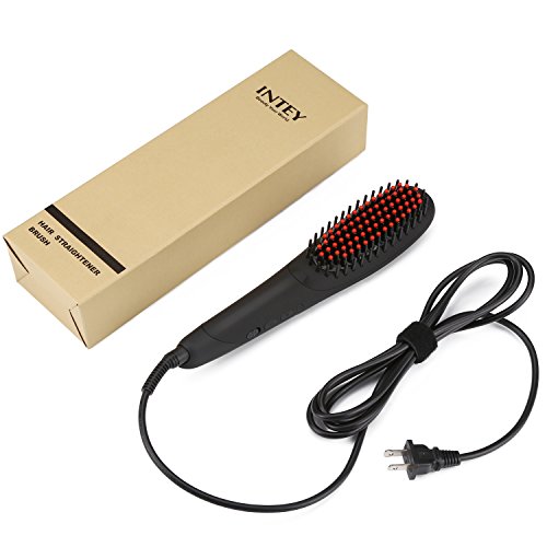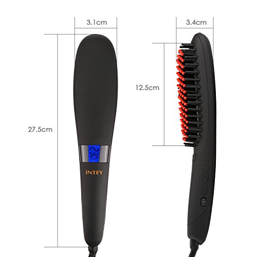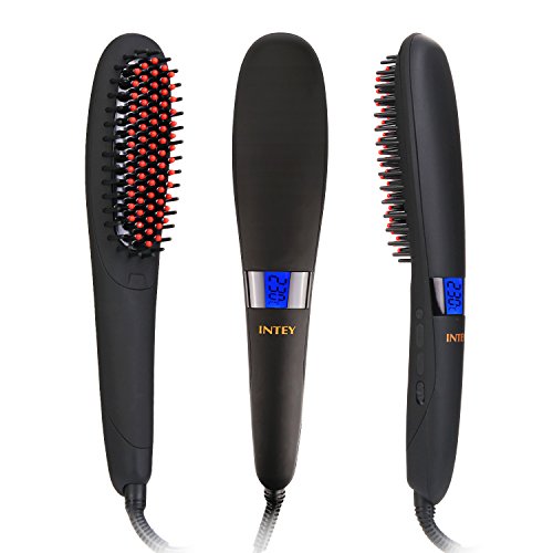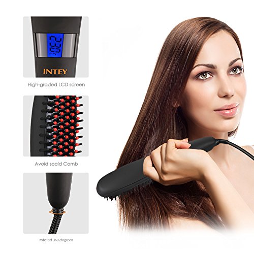 INTEY Electric Straightening Hair Brush with Auto Shut Off, Anion Hair Care and Temperature Lock Function - Black