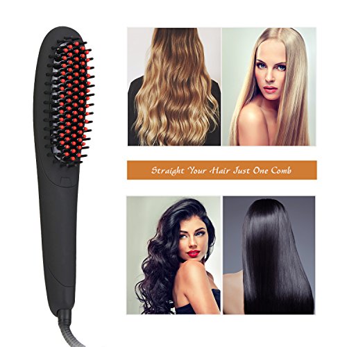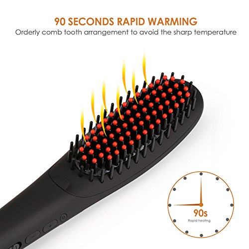 【Quick heat up and easy to use】: the hair straightening brush heat up to 180°C/356℉ in mere seconds, straighten your hair in minutes to save you much time. With one pass on each section of hair, the straightener brush will make your hair straight and smooth