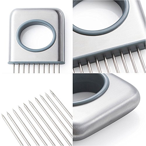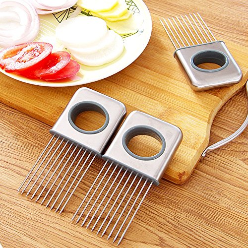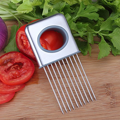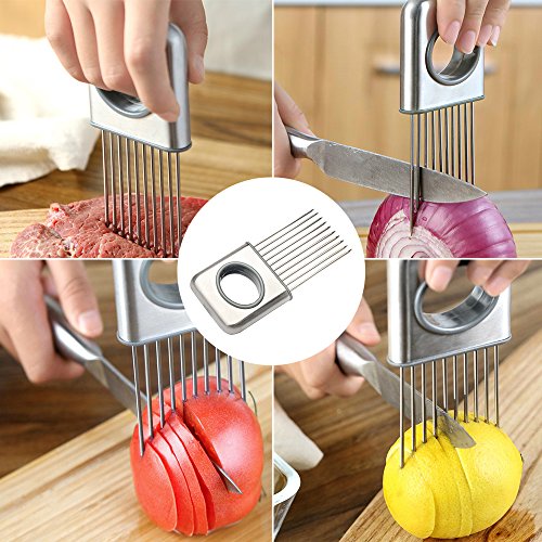 Onion Holder with Finger Guard,Stainless Steel Onion Slicer Garlic Potato Onion Slicer Cutter