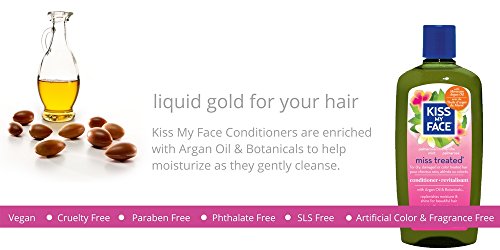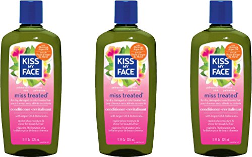 Kiss My Face Miss Treated Conditioner for Damaged Hair, Organic Conditioner with Argan Oil, Palmarosa Mint, 11 Ounce (Pack of 3)