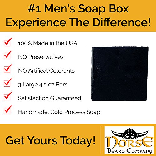 Pine Tar Soap (3 bar set) - 5 ounces each - Mens Face and Body Exfoliating Black Soap Bar with Pine and Activated Charcoal - Handmade in USA with Coconut Oil, Olive Oil & Pine Tar