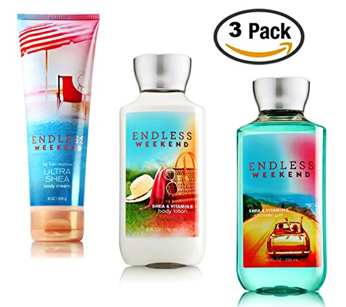Endless Weekend - 3 Piece Bath and Body Works Gift Set - Endless Weekend Lotion + Endless Weekend Ultra Shea Triple Moisture Cream + Endless Weekend Shower Gel