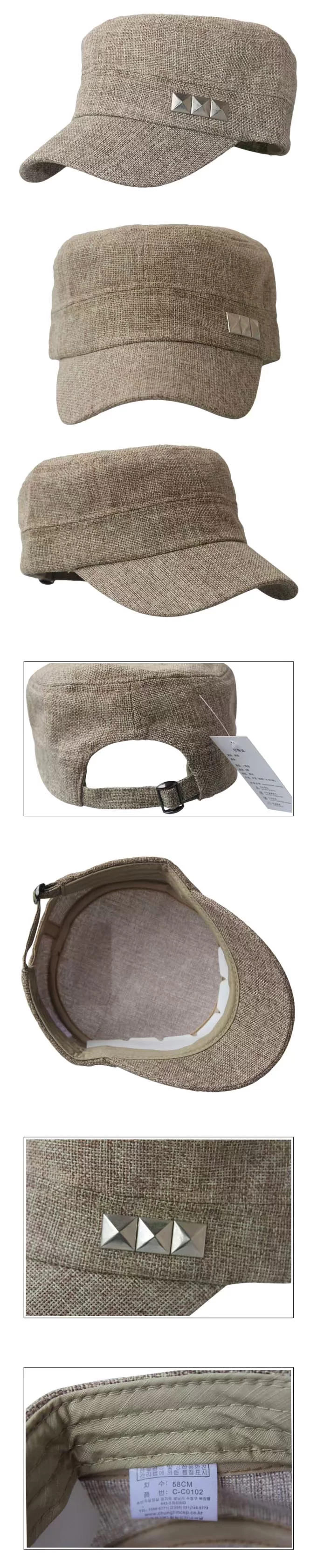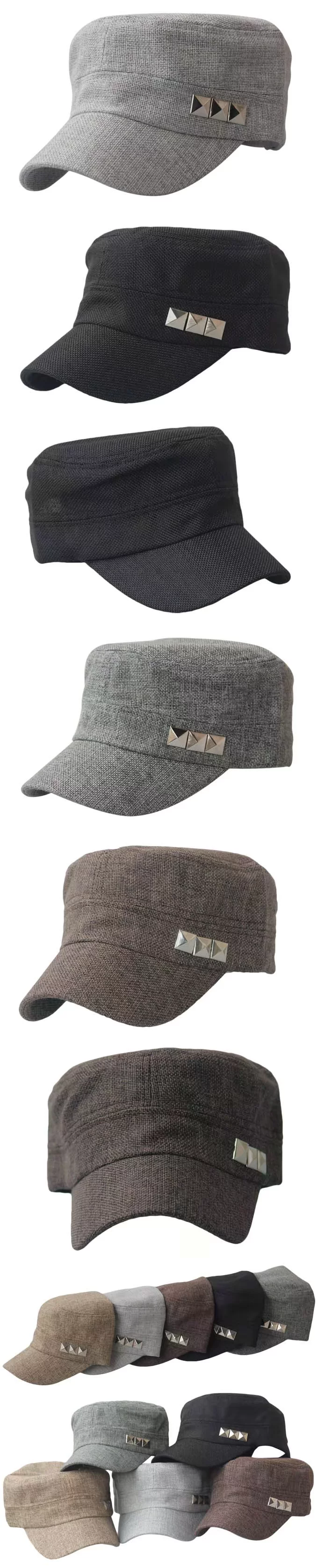 择信 春夏季亚麻料时尚韩版铆钉男士户外军帽女士凉爽透气平顶帽 择信 春夏季亚麻料时尚韩版铆钉男士户外军帽女士凉爽透气平顶帽
