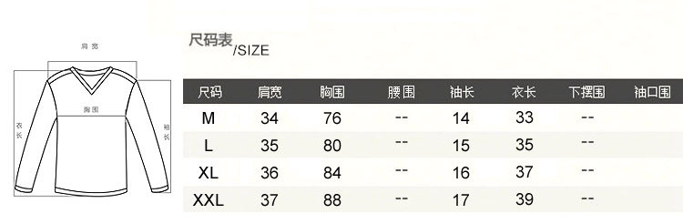 M:肩宽 38CM 胸围 102CM 衣长 50CM