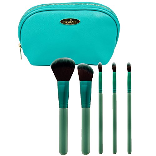 Draizee 6 Piece Makeup Brush and Cosmetic/Travel Accessory Bag (Aquamarine)