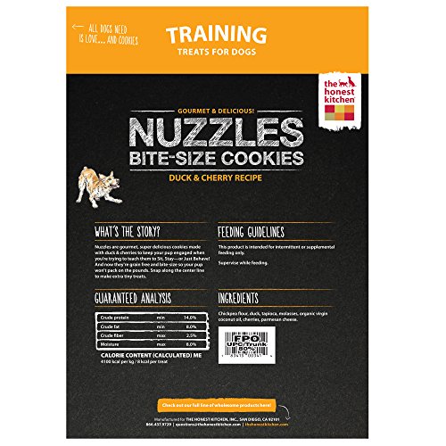 -. Binding : Misc. -. Brand : Honest Kitchen -. Feature : Made with FREE-RANGE CHICKEN AND CRANBERRIES / PERFECT for even the pickiest of pups / LOW CALORIE pet treats / 100% HUMAN GRADE dog treats / MADE IN THE USA by a family-owned company, nothing from China -. Label : The Honest Kitchen -. Manufacturer : The Honest Kitchen -. PackageQuantity : 1 -. ProductGroup : Pet Products -. ProductTypeName : PET_SUPPLIES -. Publisher : The Honest Kitchen -. Studio : The Honest Kitchen -. Title : The Honest Kitchen Natural Human Grade Dehydrated Grain-Free Cookies