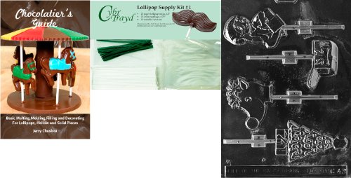 Cybrtrayd Assortment with Drummer Lolly Chocolate Mold with Chocolatier's Bundle of 25 Lollipop Sticks, 25 Cello Bags, 25 Green Twist Ties and Chocolatier's Guide