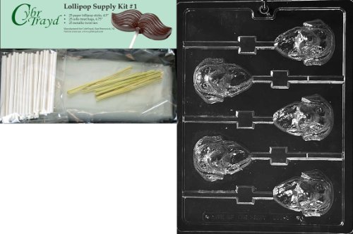 Cybrtrayd "Labrador Retriever Lolly" Dog Chocolate Candy Mold with Lollipop Supply Bundle of 25 Lollipop Sticks, 25 Cello Bags, 25 Gold Twist Ties and Instructions