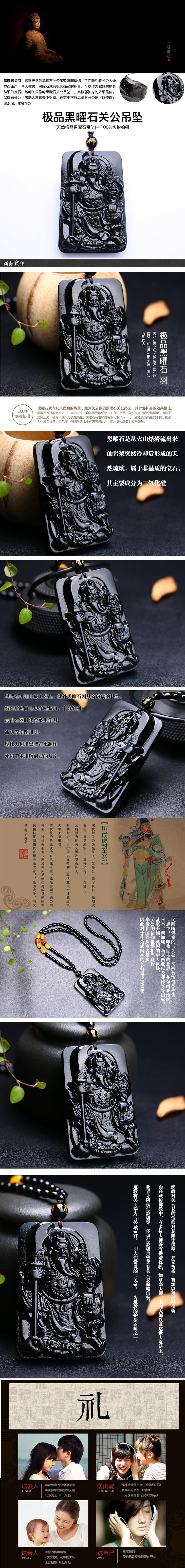 开光黑曜石吊坠个性男士项链关公吊坠关二爷关羽项链财神霸气佛珠