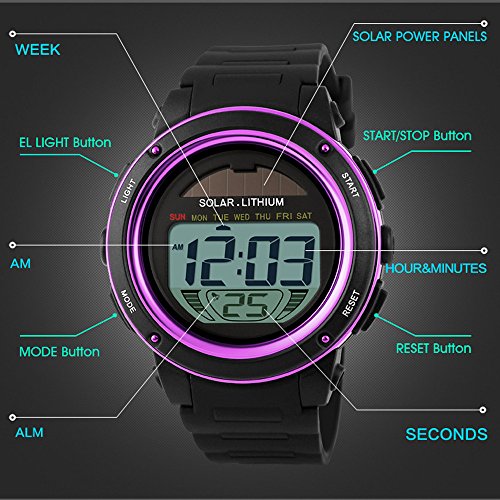 -. Feature : Multifunction: Back light, alarm, chronograph,week, 12h 24h type. / SIMPLE and FASHION: sport fashion design with simplicity, perfect for both indoor and outdoor activities / Scratchless hardlex glass, shock resistant, quality plastic band, soft and comfortable. / Suitable for social, outdoor sports casual, running, climbing, cycling and other activities. / WATERPROOF FUNCTION: 164 ft waterproof (50 M) - 5ATM(not for swiming, diving,etc). NOTE: please DO NOT press any buttons in the water.