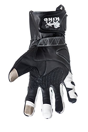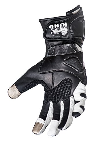 -. Feature : Cowhide premium leather construction for weather resistance, long lasting durability and impact protection. / "PTK Palm" was designed by Protect the King engineers for long lasting endurance, grip, abrasion resistance and throttle comfort. / "Golden Touch" mobile phone and GPS touch assist technology. / Pre-curved fingers for comfort and reduced fatigue. / - Double layered leather reinforcement with added rubber protection on fingers, thumb, palm and side of cuff. - Long extended Sure-Lock Flap Closure system.