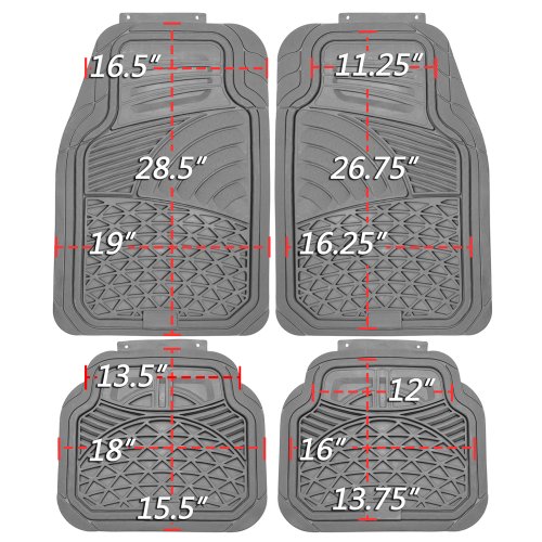 -. Feature : Set Includes: 2 Front Mats (19.1 inch x 28.7 inch), 2 Rear Mats (15.9 inch x 17.9 inch) / Easily Trimmable for a Semi-Professional custom Fit / 100% All-Weather Heavy Duty - Protects Vehicles from Dirt, Dust. Rain, Hail, Sleet, Ice, Snow / Made From 100% HD Rubber - Super Easy to Clean / Fits Model Years: 1993 1994 1995 1996 1997 1998 1999 2000 2001 2002 2003 2004 2005 2006 2007 2008 2009 2010 2011 2012 2013