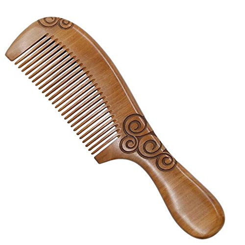 HOYOFO Natural Peach Wood Hair Comb No Static Carved Comb for Head Hair,Mustache,Beard with Handle, TM191