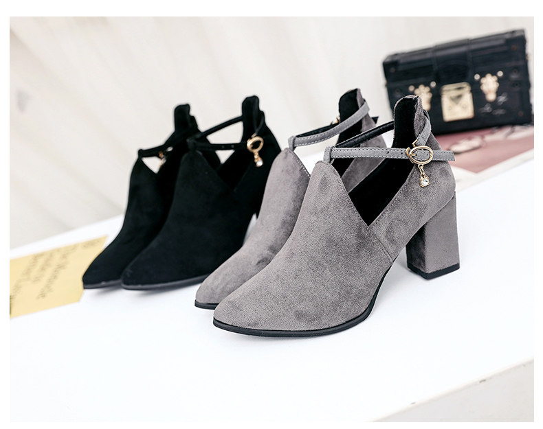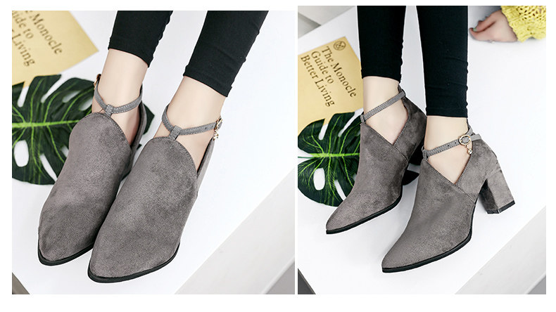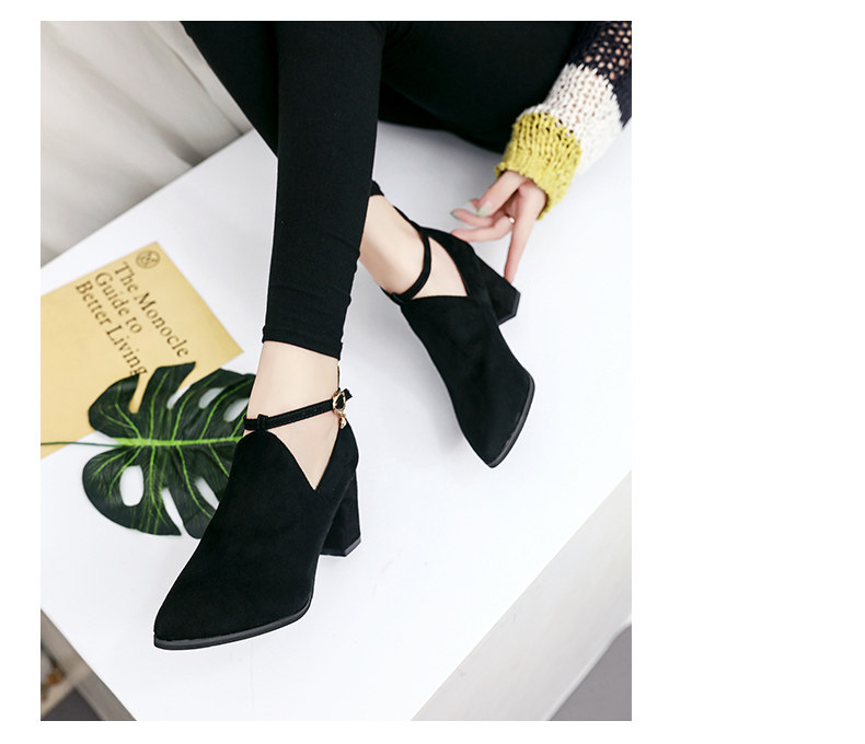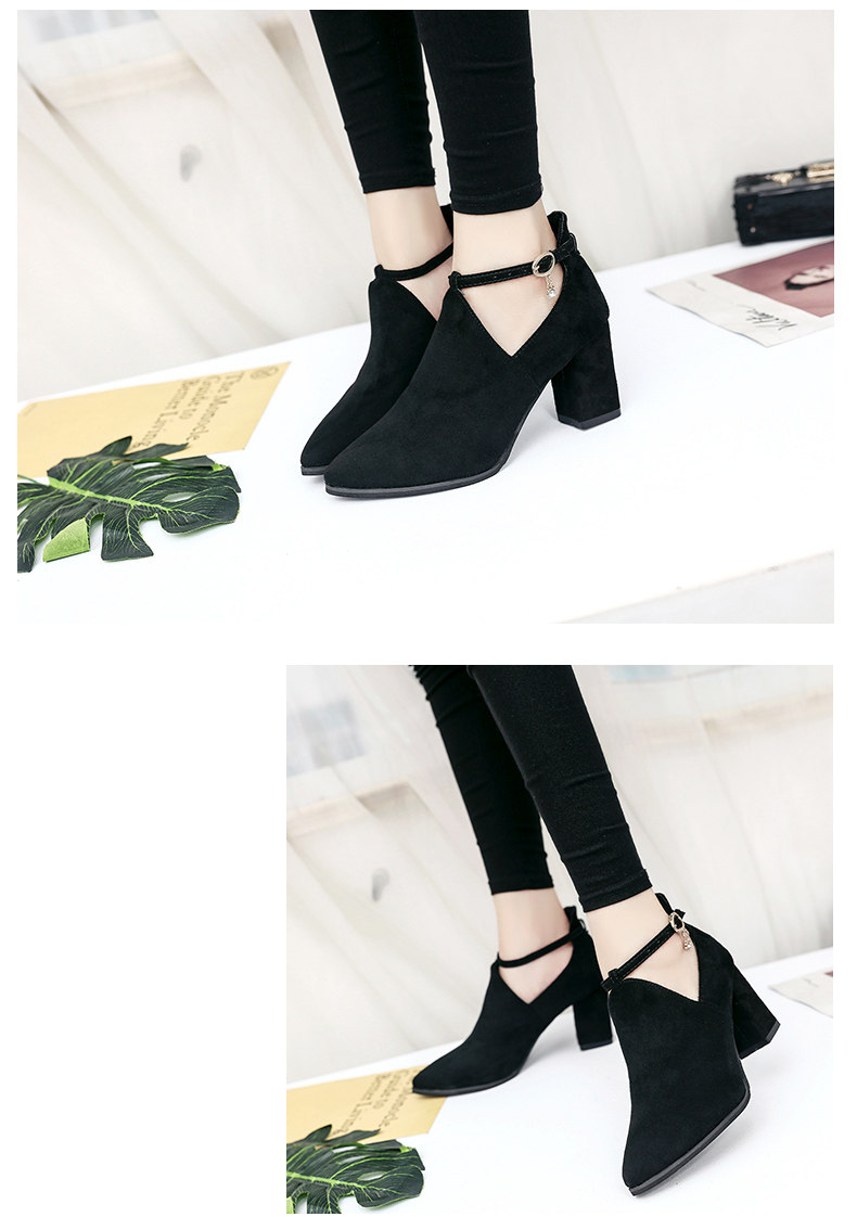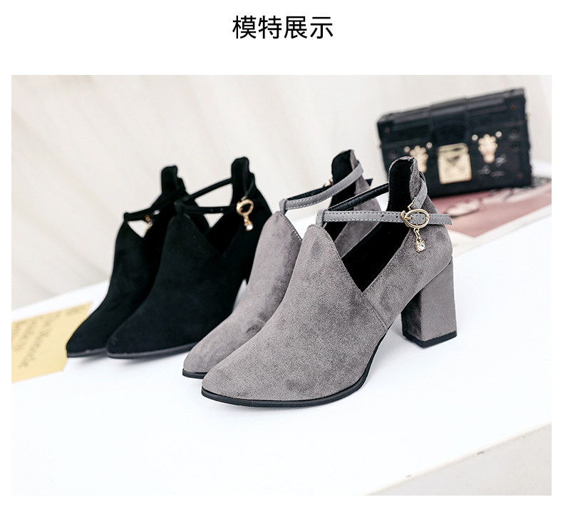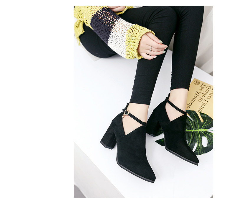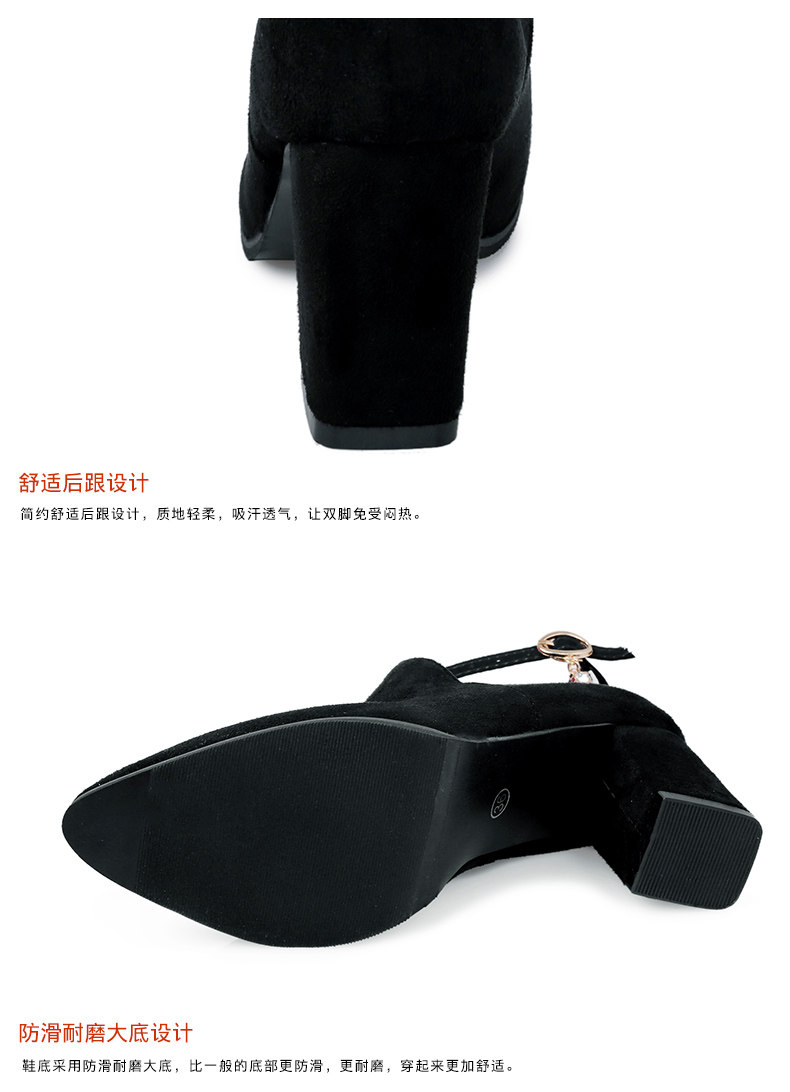 欧洲站粗跟尖头棉靴女秋冬季新款一字扣带高跟百搭性感女鞋子