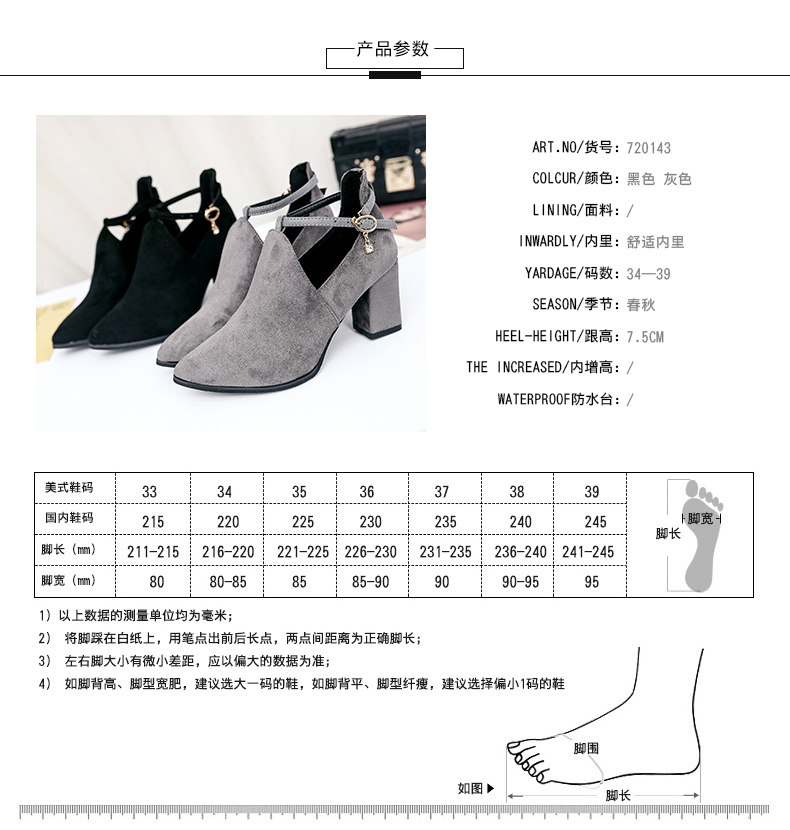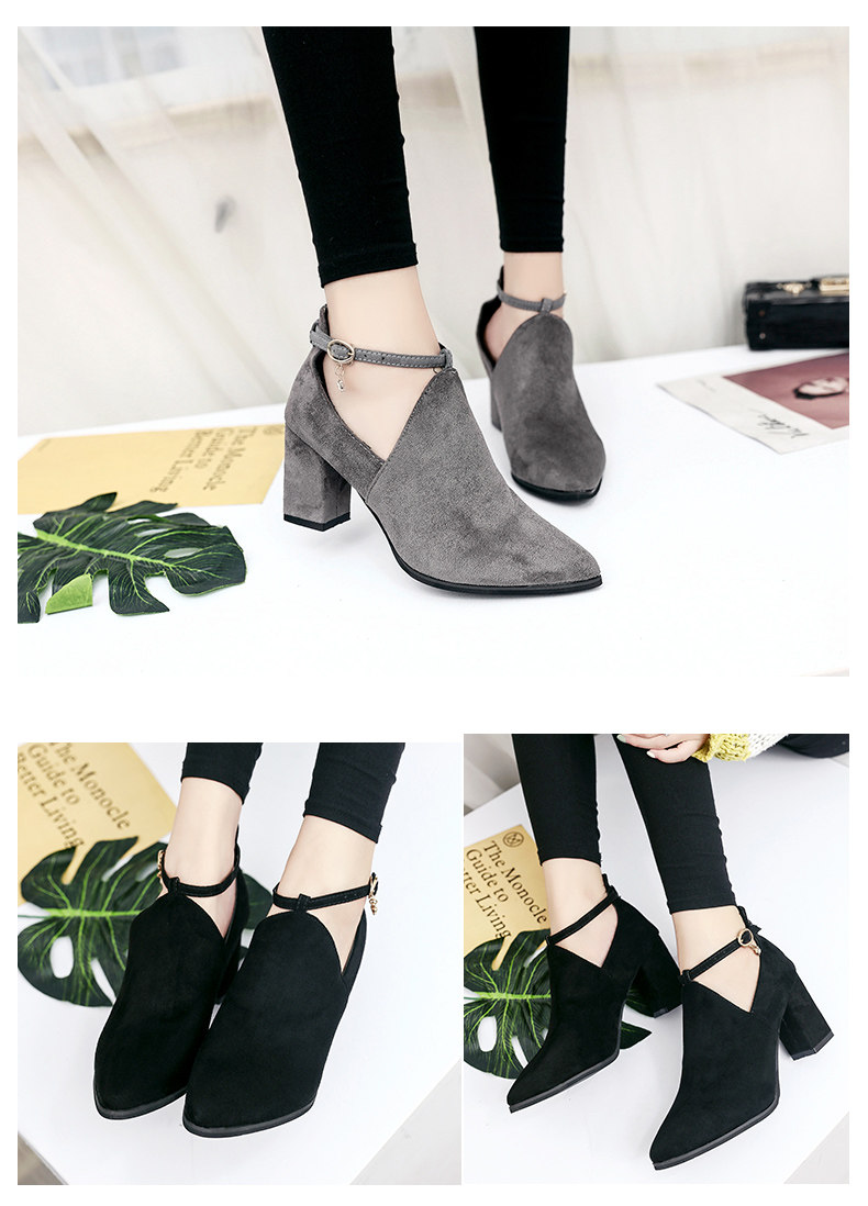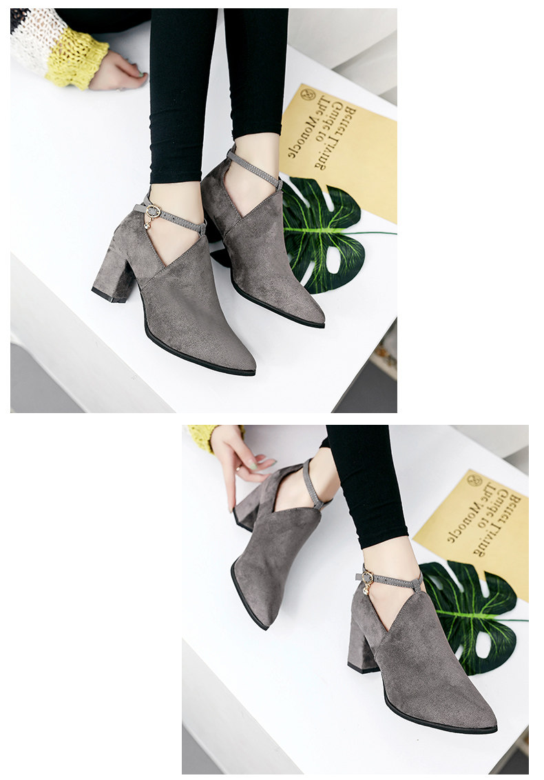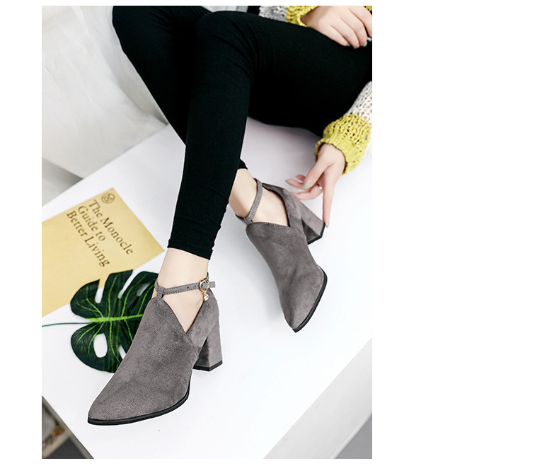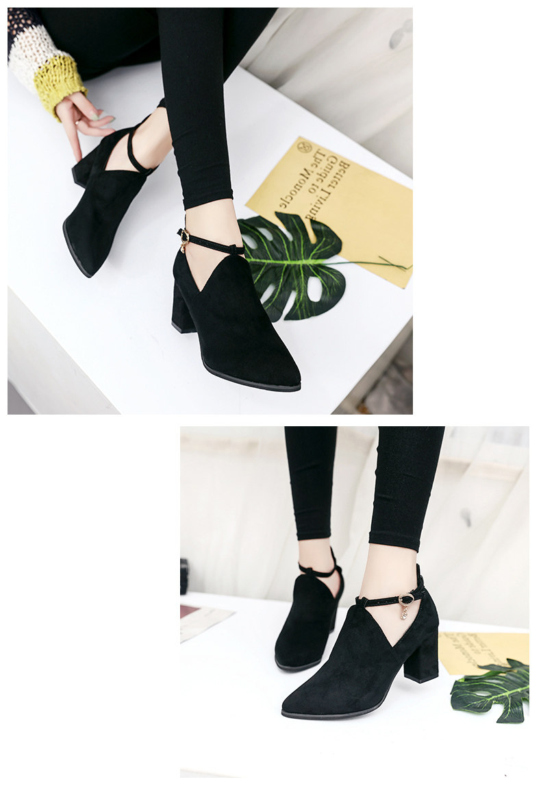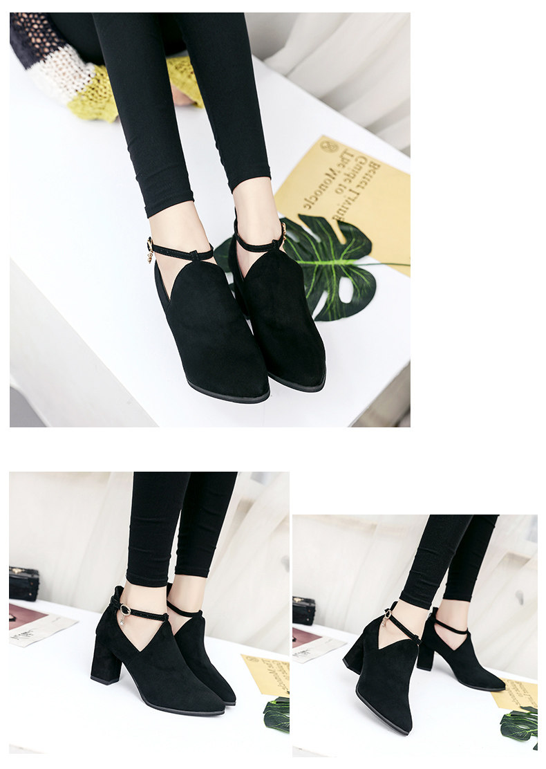 欧洲站粗跟尖头棉靴女秋冬季新款一字扣带高跟百搭性感女鞋子