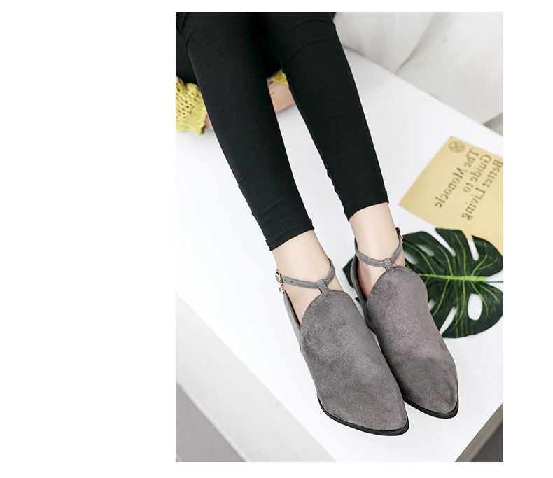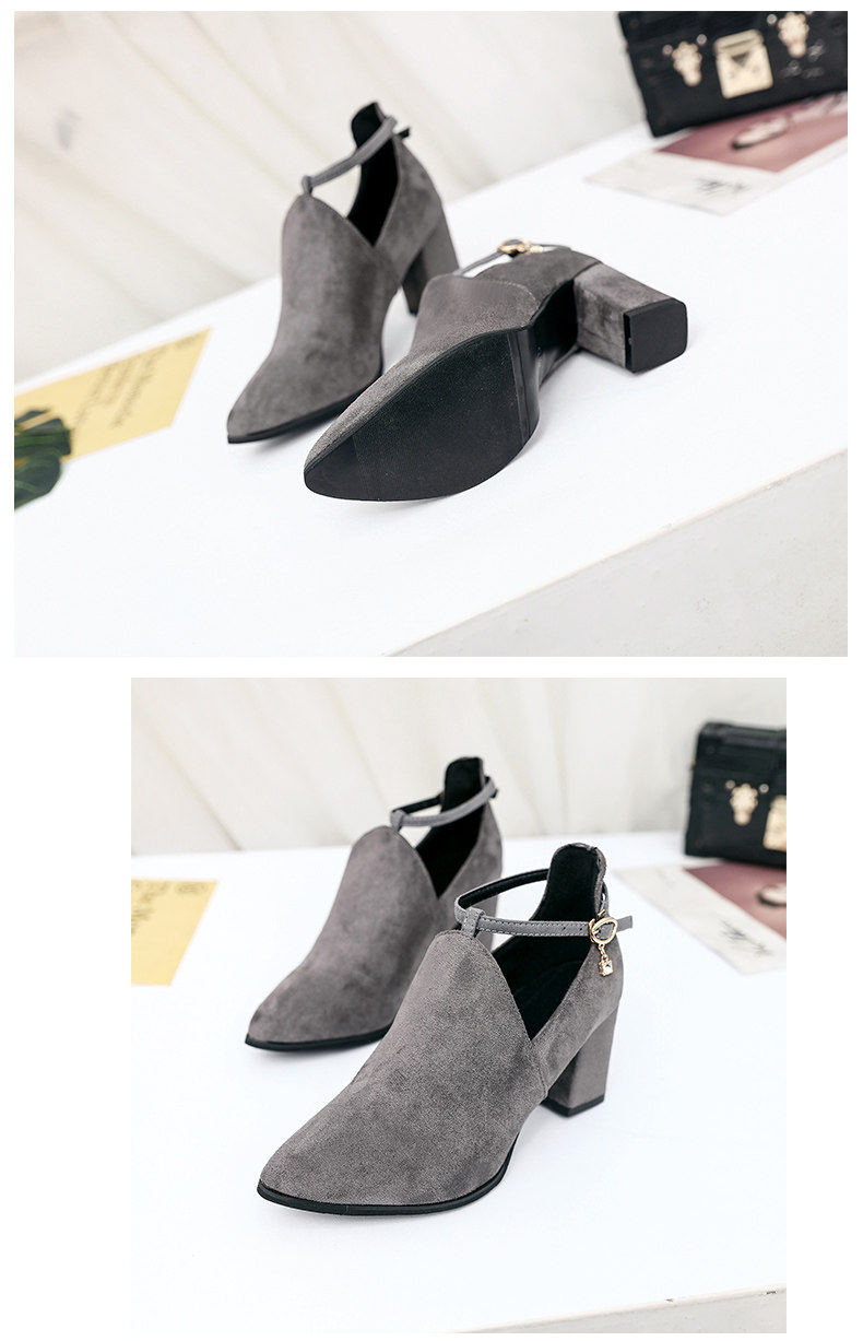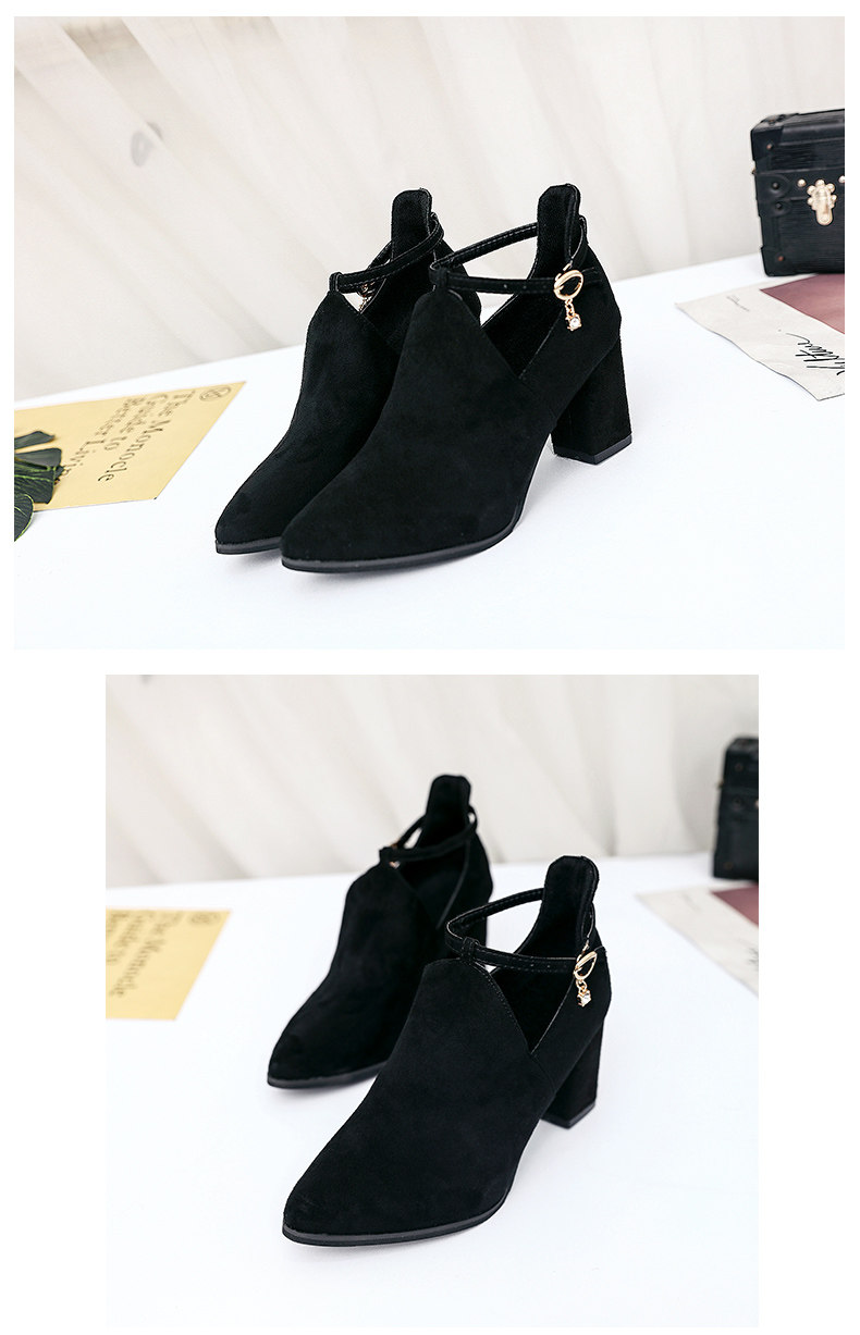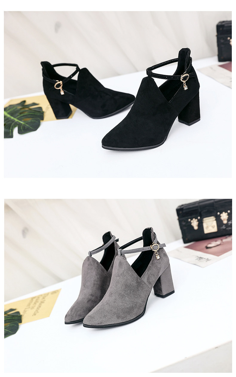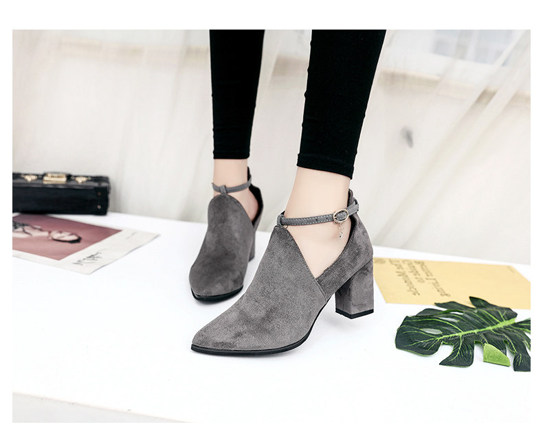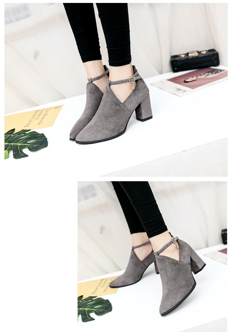 欧洲站粗跟尖头棉靴女秋冬季新款一字扣带高跟百搭性感女鞋子