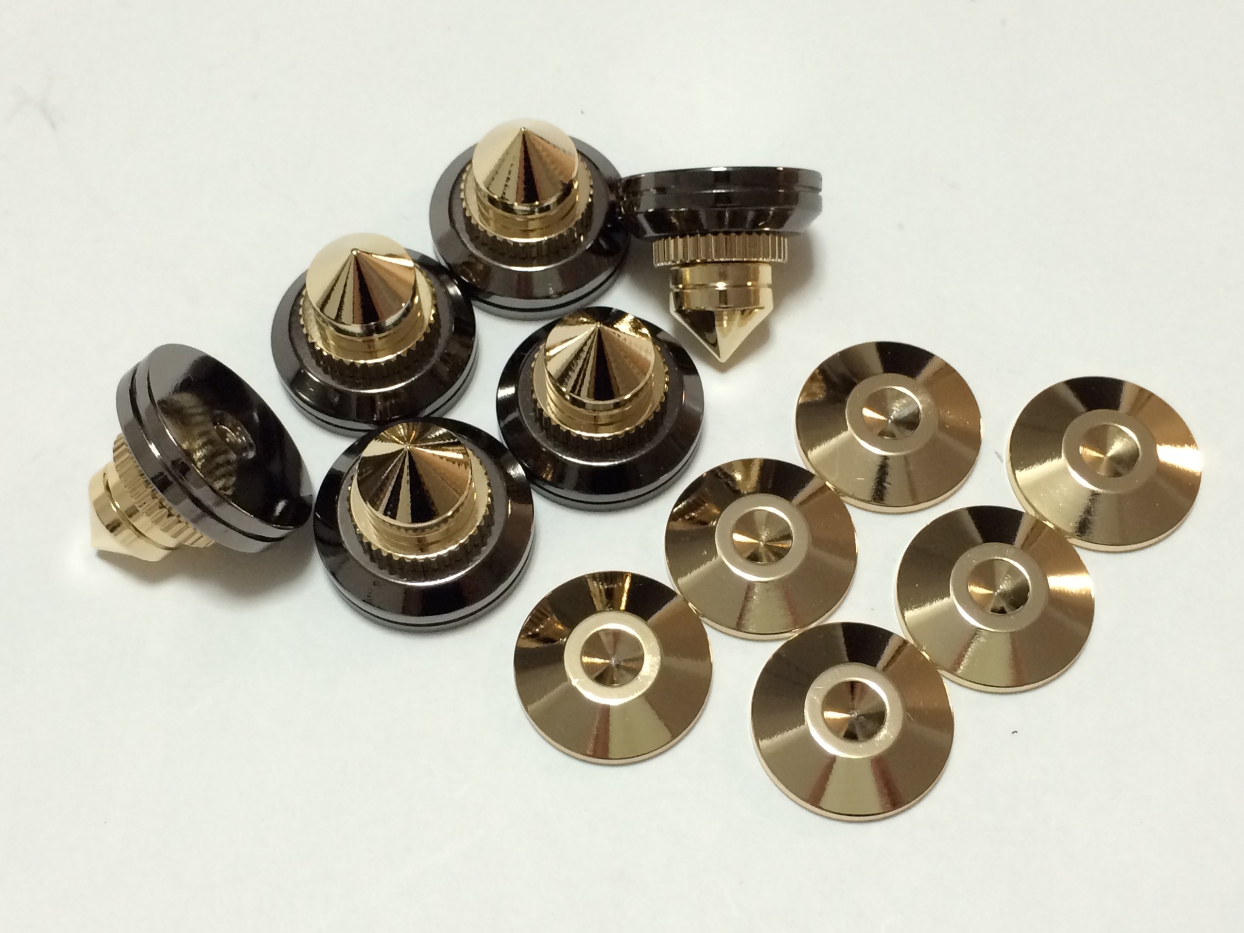 There is no screw hole on the adhesion surface between the spike and the amplifier or speaker, so it will be glued with double sided tape etc. to fix it.