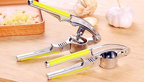 Garlic Press,304 Stainless Steel kitchen Garlic Press, Garlic and Ginger Mincer/Nut Cracker,designed with non-slip green handle