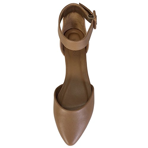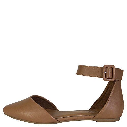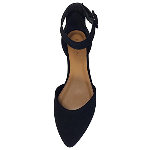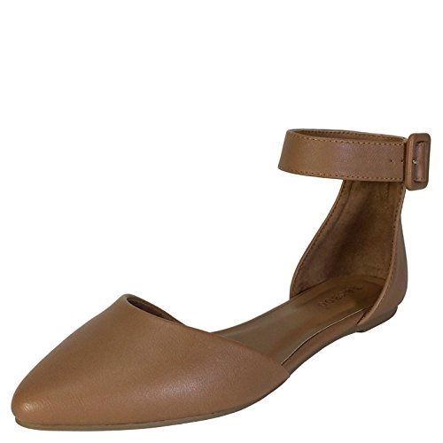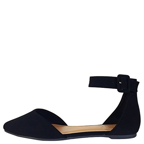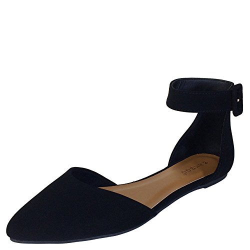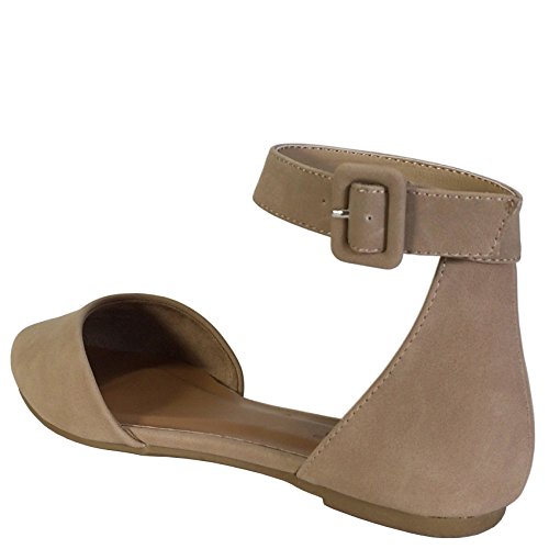 BAMBOO Women's Almond Toe Skimmer With Ankle Strap