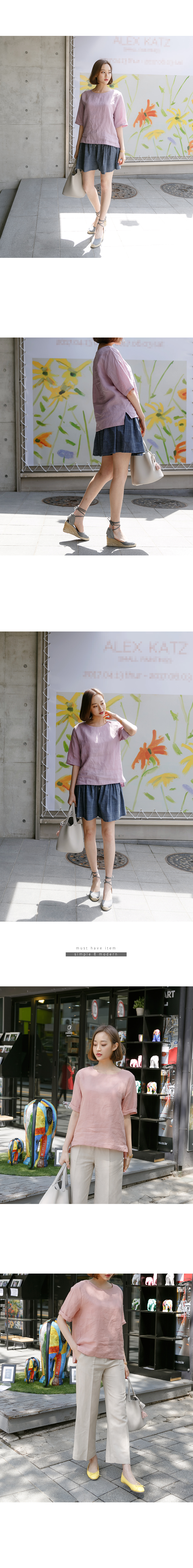 심플한 라인의 린넨 100% 박시 블라우스