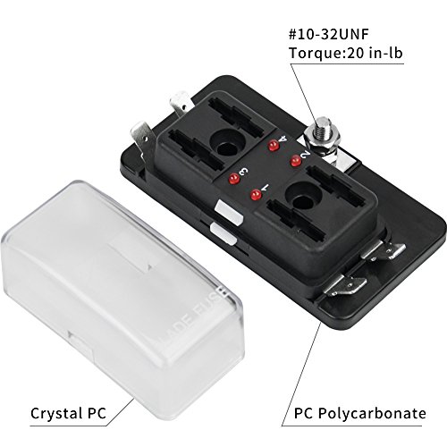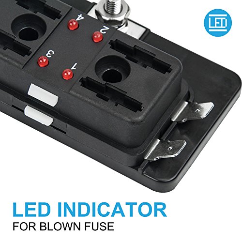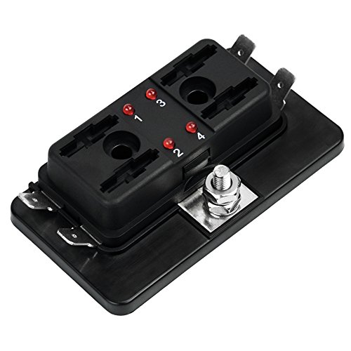 Liteway Car Truck 4 Way 12~32V Blade Fuse Holder Box 4-Circuit Fuse Block with Cover for Automotive Boat Marine(LED Indicator), 2 Years Warranty