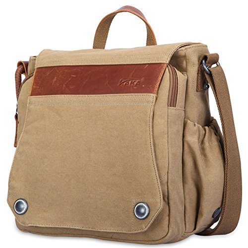 -. Brand : Sechunk -. Department : unisex-adult (lage only) -. Feature : Main material: Use high-quality canvas, bronze metal and leather / Structure: A total of 10 pockets, external: a front zipper pocket, a zippered back pocket, a zipper pocket each side; inside: one main pocket, two open pockets, two pen, a zipper pocket; / Dimensions: 10.63 '' * 5.91 '' * 10.24 '' Capacity: 10.53 L (Please note that capacity size) Weight: 0.85 KG / Features: simple, stylish design, large space, space design is reasonable, it can store a lot of things that need to go out every day, such as cell phones, water bottles, umbrellas, file, glasses and so on; / Sechunk: This bag will meet all your requirements, and it look absolutely perfect. You will like it. -. ProductGroup : Apparel -. ProductTypeName : LAGE -. Title : Sechunk Canvas Leather Messenger Bag