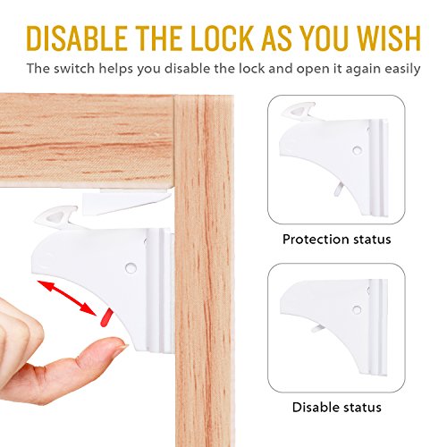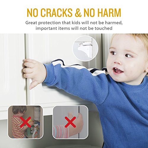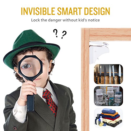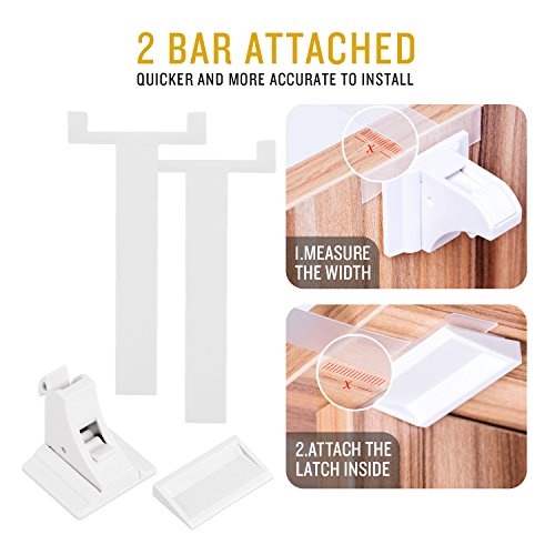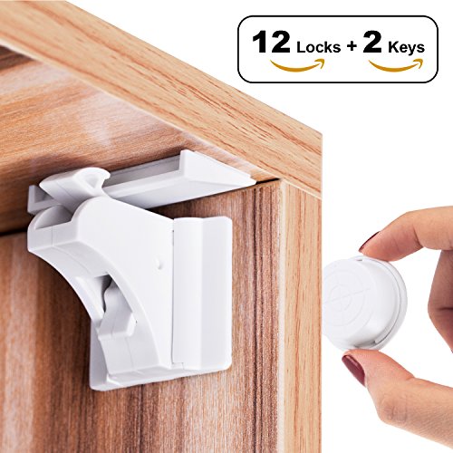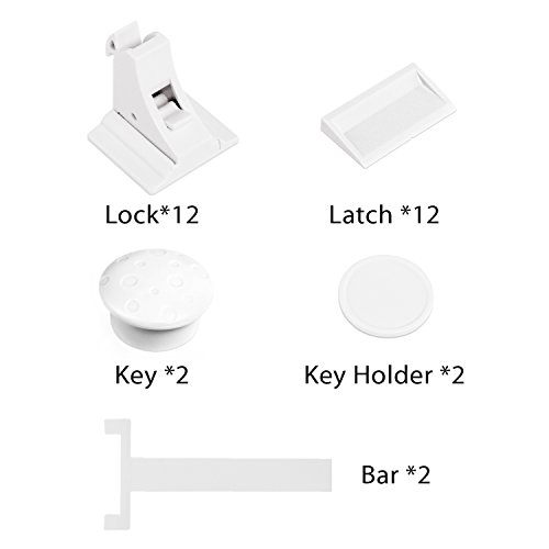 Product description: This is definitely the best child safety cabinet lock for you to choose! Apply upgraded and invisible design, our product can provide great protection for you and kids without changing the appearance of the furniture, avoiding ugly plastic childproof locks for a streamlined look at the same time making curious toddlers less likely to investigate a cabinet. The installment process do not need drilling or any other tools, the strongsturdy 3M adhesive with 2 bars attached for free can provide elegantquick installment and durable protection. The tight design means no little fingers can squeeze in between and get hurt. Your important files and documents will not be messed up, a cabinet with dangerous items like knives, scissors will be inaccessible to your kids as well! Installation structions: 1. Clean up the surface of the cabinet which is needed to install the locks. 2. Find the suitable sticking place and use the bar to match the lock and the buckets. 3. Peel off the film of the 3M adhesive. 4. Stick the 3M adhesive onto the surface and hold for a few seconds. 5. To make sure the maximum strength of the 3M adhesive, better after 12 hours to use it. Attention: 1.Do not fit for the wrought iron furniture because the magnetic lock may disable the bolt. 2.Clean the surface on which the lock will be installed and used. 3.Please allow 12 hours for adhesive to dry before use. Package including: Safety lock *12 Magnet Key *2 Bar *2"