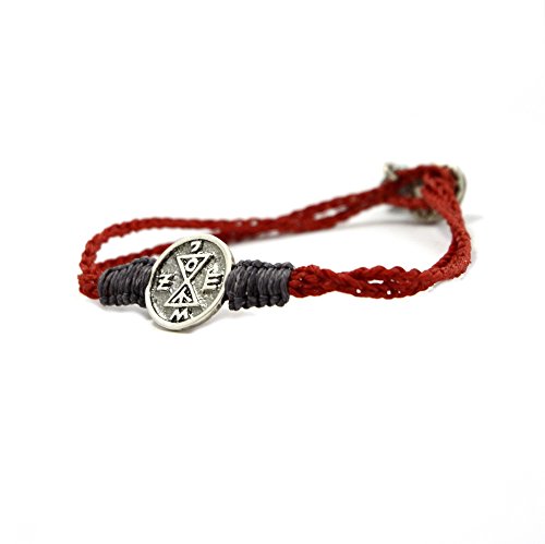 -. Feature : WOMEN'S MATCHING SEAL ON DARK RED AND GRAY MACRAME BRACELET - This Matching bracelet for women includes the King Solomon Seal for finding the right match or partner in life - made of 925 Sterling Silver. / WOMEN'S SIZE 7" MATCHING BRACELET - This bracelet is size 7" for women with two braided strands in dark red and a woven center section in gray. The bracelet closes with a handmade button clasp. The coin charm is 0.5" in diameter. Also available in 8" size - see other listing. / 925 STERLING SILVER ORIGINAL KING SOLOMON AMULET - The bracelet charm (925 Silver) is a King Solomon Seal amulet. King Solomon amulets, inspired by King Solomon, increase awareness and focus people on a specific goal or dream. Choose the Seal that's right for you - 14 different seals available! / WATERPROOF HANDMADE MACRAME CHARM BRACELET: Very sturdy, high quality handmade macrame bracelet made with two tones of wax cotton cord - Waterproof. / **100% FULL MONEY BACK GUARANTEE: MIZZE Made for Luck Jewelry provides a 100% full money back guarantee. If you are unhappy with your Charm Bracelet, for any reason, please contact us!
