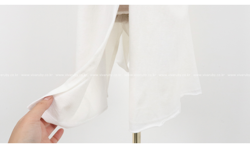 밑단 컷팅 디테일로 유니크한 포인트를 주었어요