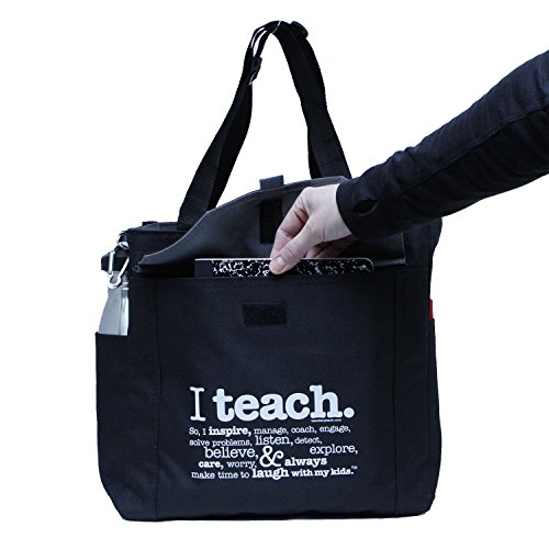 -. Feature : Durable micro-canvas tote teacher bag is the perfect gift for new teachers or to show your appreciation and say thank you to all teachers / Versatile case is full of convenient, thoughtfully placed pockets and velcro closures to hold water bottles, sunglasses, and other accessories while protecting your belongings / Adjustable straps offer a range of carrying options, adjusting up to a 15 inch drop height allows you to customize for comfort / Stylish design is perfect for everyday use, conferences, workshops, events, and more / Made from durable, micro canvas and reads "Yes. I Teach. So, I inspire, manage, , engage, solve problems, listen, detect, explore, believe, care, worry, & always make time to laugh with my kids."