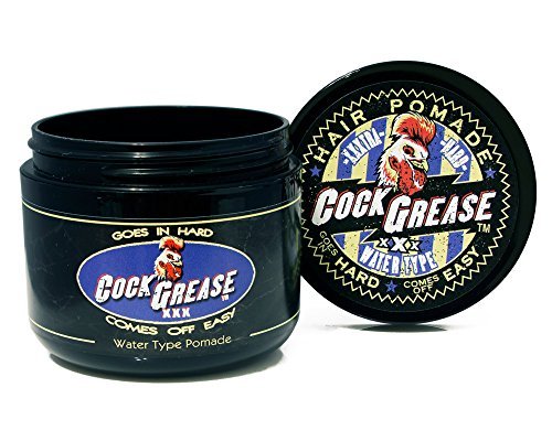COCK GREASE WATER SOLUBLE XXX EXTRA HARD HOLD POMADE Water-based pomade with a firm hold that can be re-combed! Product Details - 4 oz - Extra Hard Hold - Great Scent HOW TO USE IT: Cock grease Pomade has been formulated to allow you to style your hair to a desired style. - Take a dab of Cock Grease, rub an ample amount in between the palms of your hands and work it into your hair. - Comb or brush and repeat as desired.Feature
