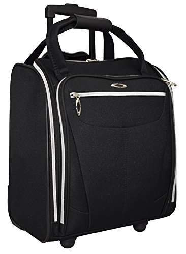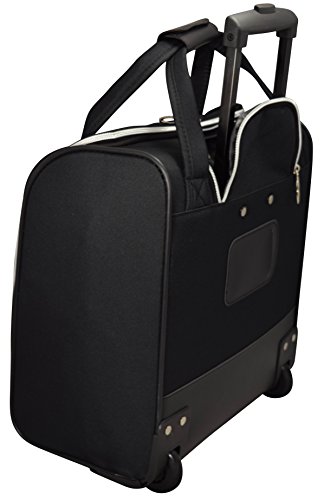 -. Brand : Kemyer -. Color : Black -. Department : womens -. Feature : Made of high quality 600D polyester / Vertical 15" carry-on designed and crafted to fit under an airplane seat / Inline skate wheels with telescopic handle system / Features 2 exterior pockets and 1 interior pocket / Dimensions: 15 inch x 14 inch x 8.5 inch -. ProductGroup : Apparel -. ProductTypeName : LAGE -. Title : Kemyer 15 Inch Underseater Carry-on Wheeled Lage