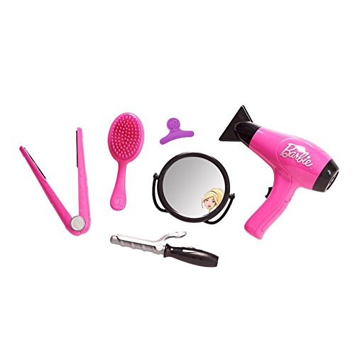 Here's the perfect accessory kit for little girls and their Barbie toys. Little girls ages: 3 years old and up are going to love playing with the "All Doll'd up Stylist Set". The hair dryer makes Realistic Sounds. This kit has 7 fabulous pieces. And it's all put together in one zip-up clear plastic carrying case.Feature