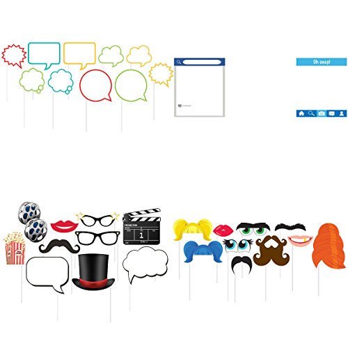 Party Photo Booth Props Set - Kit for Birthday, Wedding, Graduation, Shower, Engagement, Movie Night