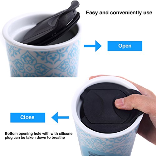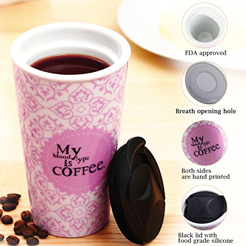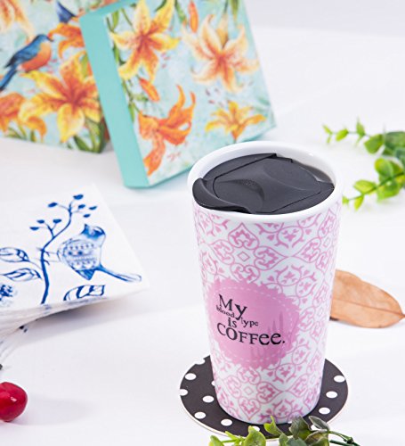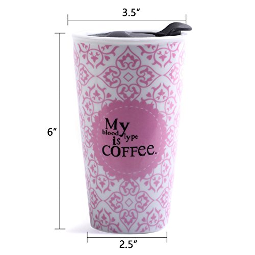 Travel Coffee Ceramic Mug Tea Cup Double Wall Porcelain With Lid 11oz. by CYPRESS, Pink