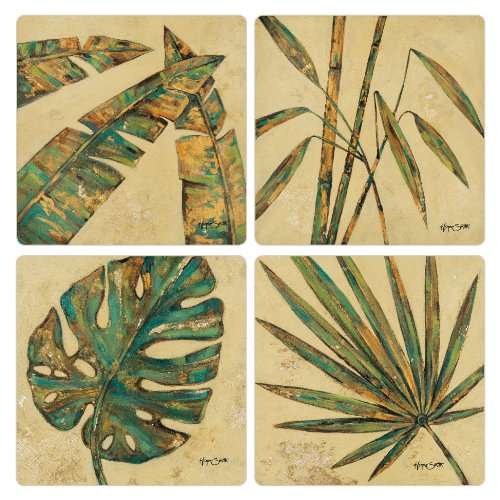 CoasterStone AS1245 Absorbent Coasters, 4-1/4-Inch, "Palm Leaves", Set of 4