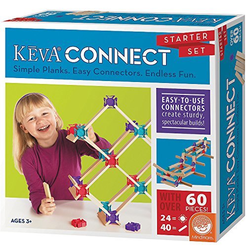 -. Feature : TOYS THAT TEACH: The P.R.Inciples behind KEVA Connect Starter Set from MindWare is the foundation of STEAM- science, technology, engineering, are and math. You'll experiment, problem solve and innovate. You'll explore angles and create patterns. Most of all, you'll have fun! / CREATE WITH KEVA: The simple stacking fun of KEVA takes on a new dimension with special connectors that lock the planks in place. Slide precision-milled KEVA planks into the Connect pieces to create geometric compositions or freeform structures. / EASY-TO-USE: To begin building with KEVA connectors just slide the connectors on the planks. That's it! You can put them in sideways or make them tall. You can even put them in at an angle. / INTERCHANGEABLE: These planks are the same size and shape of other Kapla or KEVA planks and thus can be used interchangeably with those systems to construct elaborate and expansive structures. / INCLUDES: Starter Set includes 40 planks, 24 Connects and a building idea booklet.