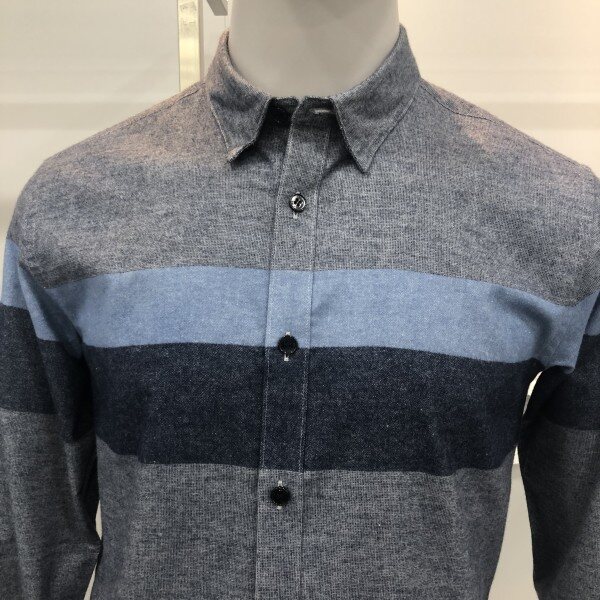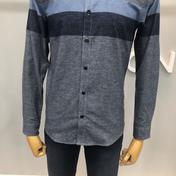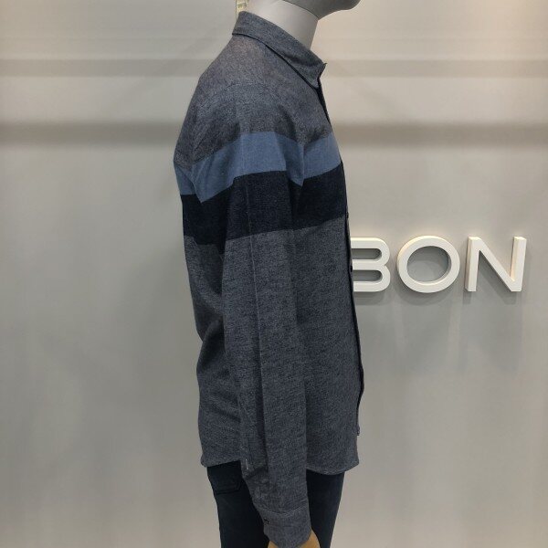 본 F/W 블루 기모 블럭킹 자카드 셔츠 두툼 한 원단의 소재이며 보온성이 좋고 신축성이 좋은 아이템입니다착장 처럼 청바지에 매치하여 입거나 슬렉스에 입으면 너무 멋진 셔츠 입니다