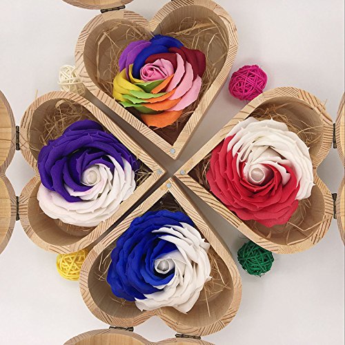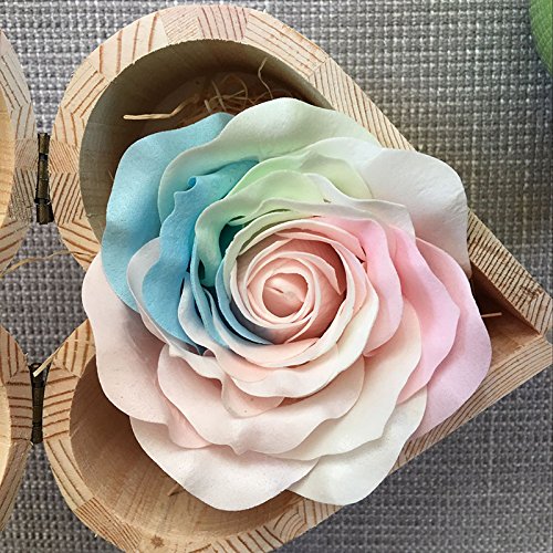 Romantic Scented Bath Soap Rose Flower Petal in Wood Heart Shape Box for Wedding Party Gift (Red)