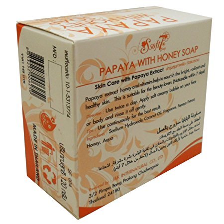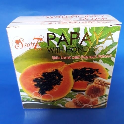 PAPAYA WITH HONEY SOAP SKIN CARE NATURAL HERBAL NET WT 120 G (4.23 OZ) SOFT 7 BRAND WITH PAPAYA EXTRACT BRIGHTENING WHITENING...