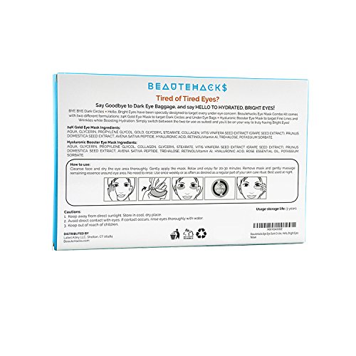 We understand no under eye area is the same so we created BYE BYE Dark Circles + Hello, Bright Eyes which are specifically designed to target every under eye concern. Beautehacks Eye Mask Combo Kit comes with two different formulations: 24K Gold Eye Mask to target Dark Circles and Under Eye Bags + Hyaluronic Booster Eye Patches to target Fine Lines and Wrinkles while Boosting Hydrating. Now you can finally treat your under eyes correctly.