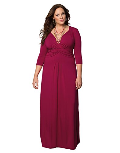 Relish in the glamour of a full length, curve skimming silhouette. Soft jersey material is attractively draped and the cross over detail on the bodice draws your eyes to the smallest part of the body. Other great details are the pleating on the torso that hides any tummy troubles and the cute ruching on the sleeves. You will feel comfortable and beautiful in this simple and graceful dress. 92% Rayon, 8% Spandex. Dry clean or hand wash separately. Made with love in the U.S.A.Feature