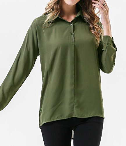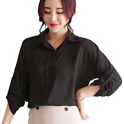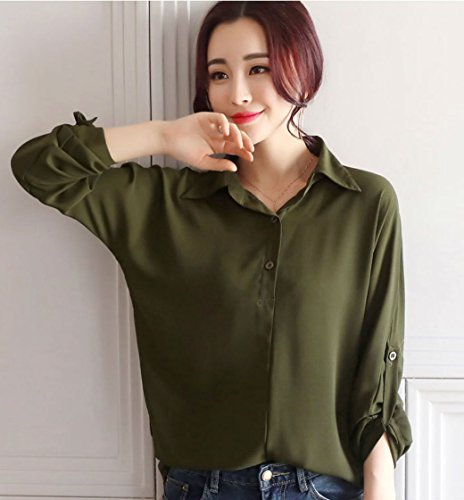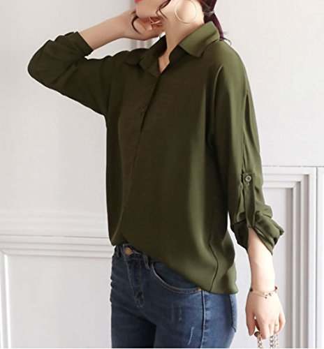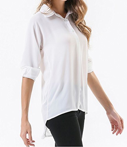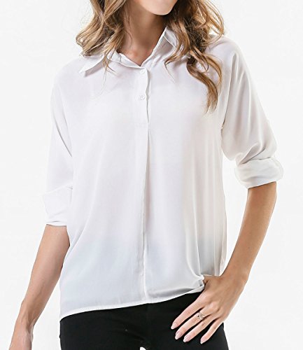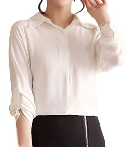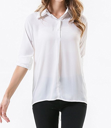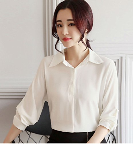 -. Feature : 【サイズ】M:着丈:68cm、肩幅:42cm、バスト:92cm、袖丈:68cm / L:着丈:69cm、肩幅:43cm、バスト:95cm、袖丈:69cm / XL:着丈:70cm、肩幅:44cm、バスト:100cm、袖丈:70cm / 長袖を折り返して五分〜七分袖に留めることが出来るロールアップシャツ。被るタイプのトッパーシャツで、襟付き前ボタン2個。 / スタンダードな襟で、スーツやジャケットのインナーとしてもしっかり極ります。シフォン素材でライト感が女性らしく、エレガントなトップスとしてお仕事や普段着としても幅広くコーディネートし易いアイテムです。 / 裾は後ろがラウンドテイルで前は直線カッティングされているので、前裾をインしても無駄なシワが出ずにスッキリ綺麗です。 / 軽いブラウスで重ね着も調整しやすく季節の変わり目もついついチョイスしてしまうね。ふんわりとゆとりがあって動きやすいです。