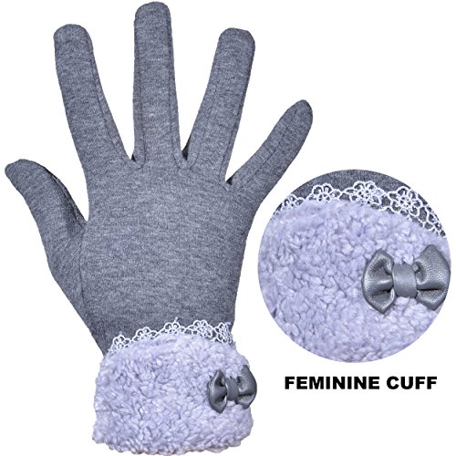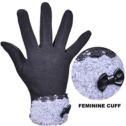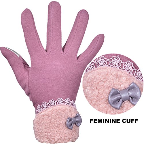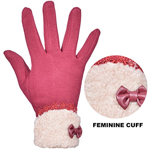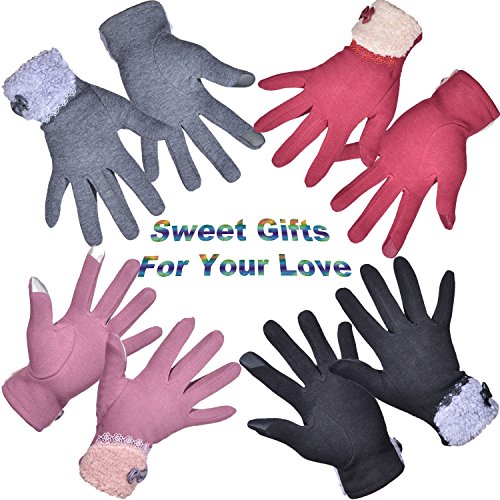 Outrip Women's Winter Fashion Touchscreen Gloves Windproof Driving Warm Mittens A PAIR OF MUST-HAVE GLOVES IN YOUR WARDROBE! 1. ONLY WARMTH NOT BLOAT Who says can't we have warm as well as slender hands at the same time? The 3D tailoring just allows your a better fit and more slender fingers! 2. JUST THE RIGHT FEMININE STYLE Our fashion gloves accented with lace and bow-knot lined in fleece, add an extra chich and feminine to your winter look. 3. USE YOUR PHONE ANYTIME With 2 screen touchable fingers, you're able to use smartphone and any other touchscreen devices normally. No matter you need to asnwer phone calls or texting, just do your routine with a pair of warm hand! PACKAGE CONTENT: 1 x Women Winter Gloves. SERVICE IS AS GOOD AS GLOVES: We try our best to provide top-quality products to our customers, as well as services. Any problems or questions, just contact us for a replacement or refund. With our no-risk customer service, feel free to add into your cart now! Get pairs of gloves for yourself, beloved family and friends too! 0 |