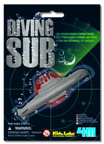 -. Feature : Watch the wonder of chemistry at work as this baking powder powered diving submarine submerges before your eyes just like the real thing. / Simply fill the submarine with baking powder, place it in water, and observe as it submerges and re-surfaces over and over again. / An excellent stocking stuffer, this toy is a great way to show how chemical reactions occur in a classroom setting. / Give the gift of science with toys and gadgets that foster curiosity and encourage scientific learning. / Recommended for ages 5 and up. / Challenge your child's imagination with 4M toys and kits. / 4M educational toys cover a wide range of educational subjects and include science kits, arts and crafts kits, robotics kits, and more. / 4M offers a wide range of toys and kits to let you build a clock, crochet a placemat, or turn your room into a planetarium--all in the name of making learning fun. / Diving submarine powered by baking powder / Fun way to experiment with chemical reactions / For home or classroom use / Baking powder not included / For ages 5 and up